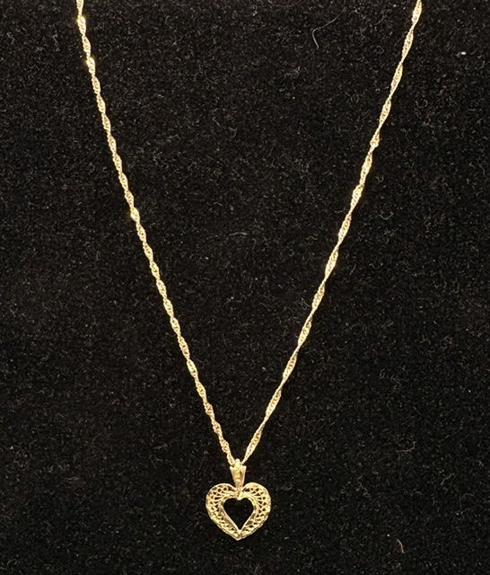 10KY Heart Pendant Necklace – 16” Classic Elegance